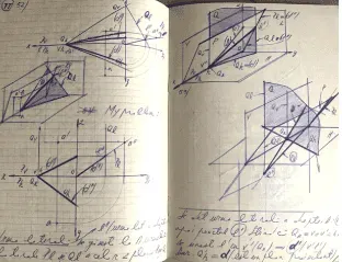 Este o călătorie în timp care a început acum 50 de ani, când studiam pentru a deveni arhitect. Am început cu desene simple, apoi am văzut cât de dificilă era examenul de admitere. Am găsit câteva cărți în biblioteca liceului din Câmpulung, un tratat de geometrie pentru studenții din primul an de arhitectură. Era scris de un profesor faimos, Adrian Gheorghiu. Aici am găsit construcția poliedrelor regulate, folosind o riglă și compas, începând de la pentagon și secțiunea de aur. Am făcut primii pași către geometria proiectivă, apoi am găsit altă carte, de M. St. Botez, Geometrie descriptivă, apoi alte manuale despre proiecții și afinitate.
